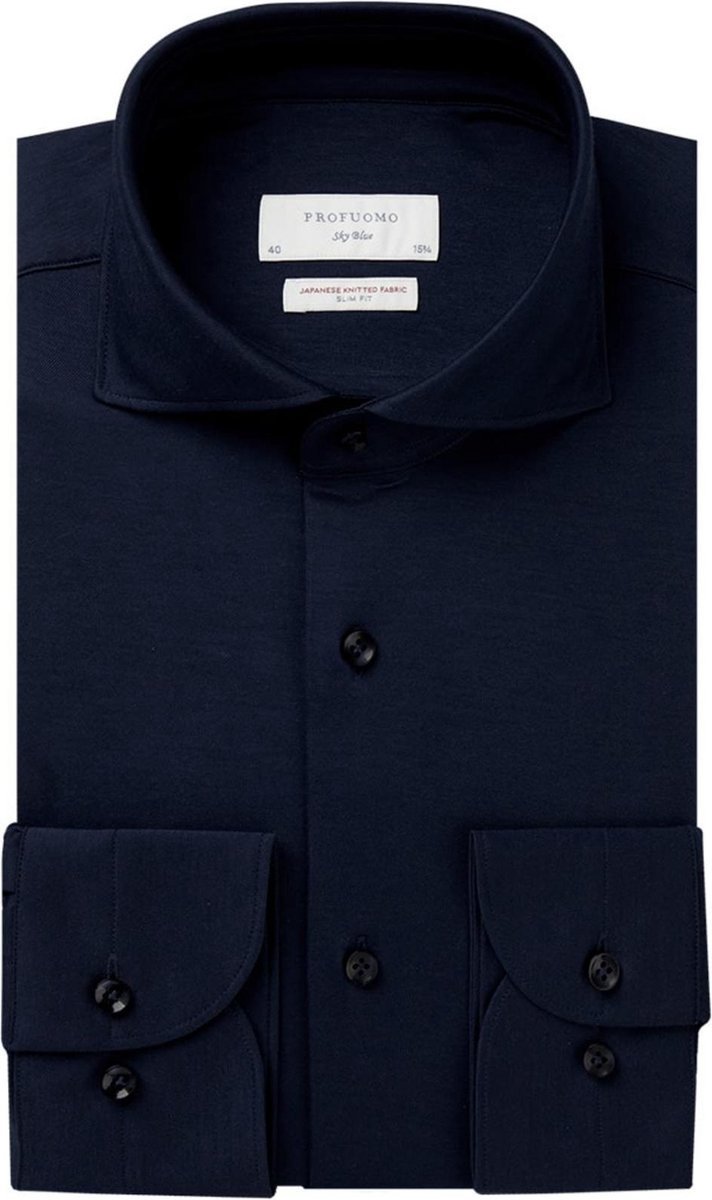 Profuomo slim fit heren overhemd – jersey – donkerblauw – Strijkvrij – Boordmaat: 42