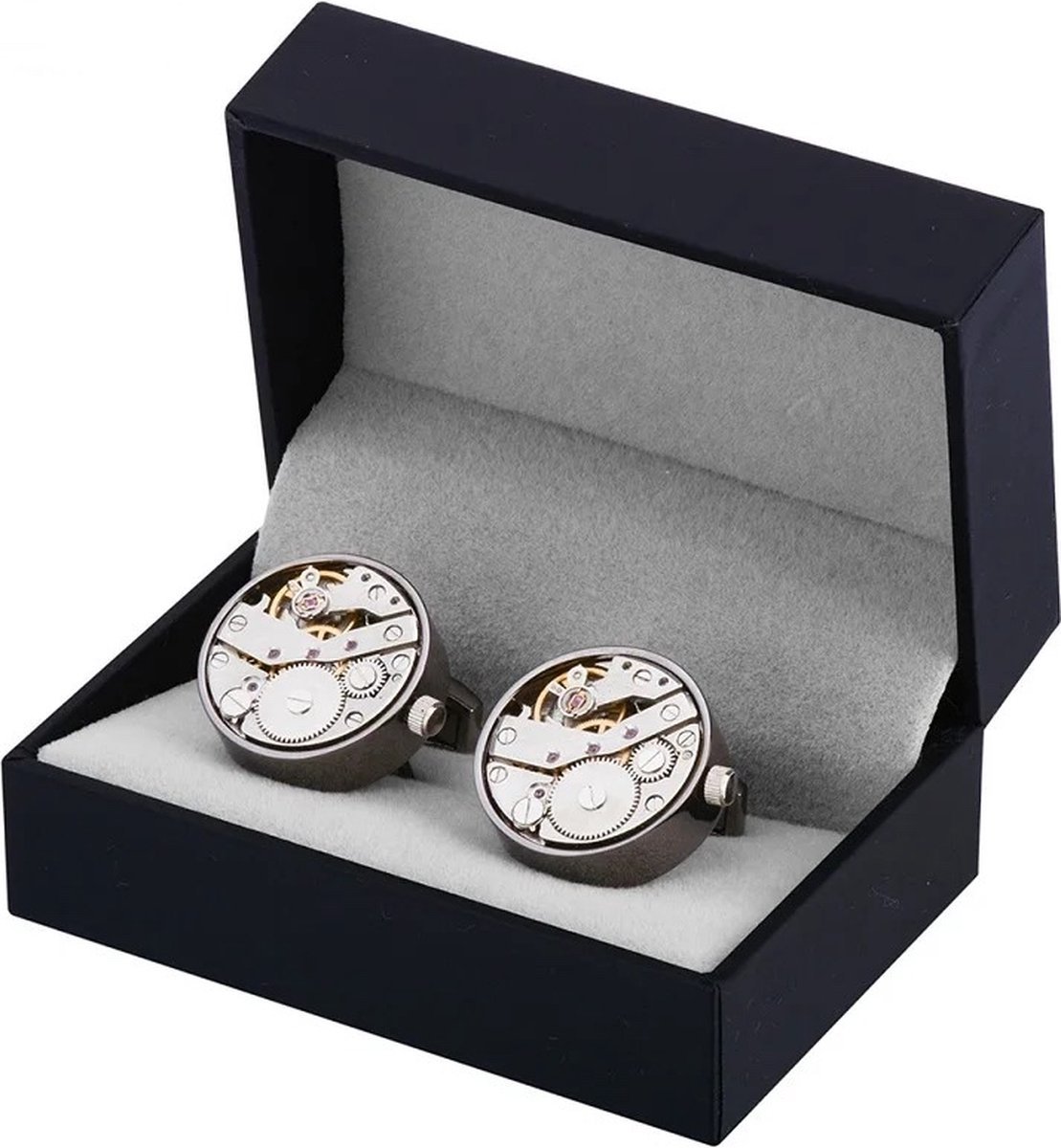 Ingewikkeld ontwerp: onze manchetknopen zijn een eerbetoon aan de precisie en het vakmanschap van een klassiek uurwerk. Elke manchetknoop heeft een ingewikkelde replica van een mechanisch horlogemechanisme, compleet met tandwielen, veren en ingewikkelde details. Het is alsof je een miniatuurkunstwerk op je mouwen draagt.