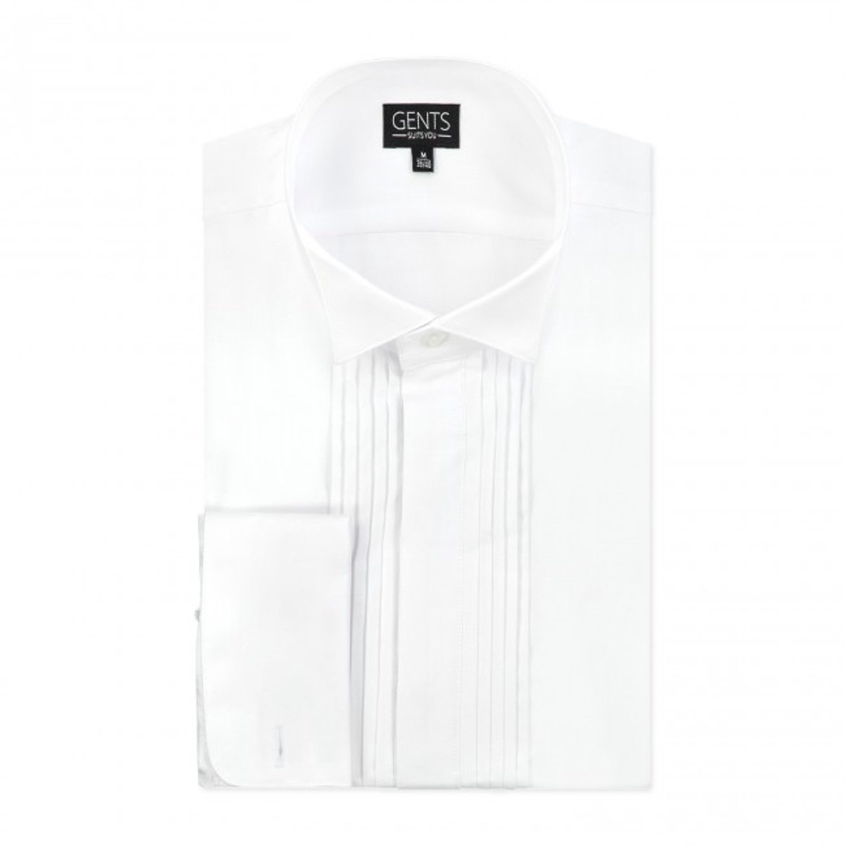 GENTS – Smoking Overhemd heren vadermoord plisse – Polyblend – Wit – Maat EU40/M