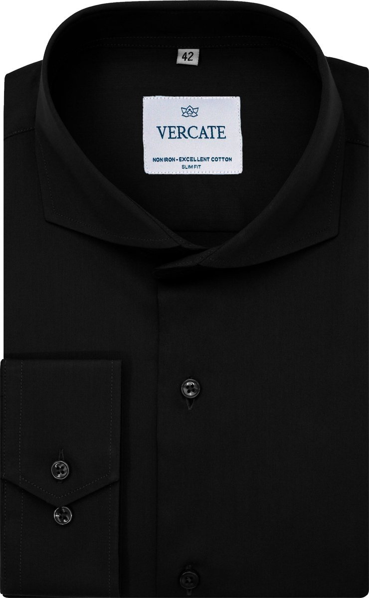 Vercate – Strijkvrij Overhemd – Zwart – Slim Fit – Katoen Satijn – Lange Mouw – Heren – Maat 37/S