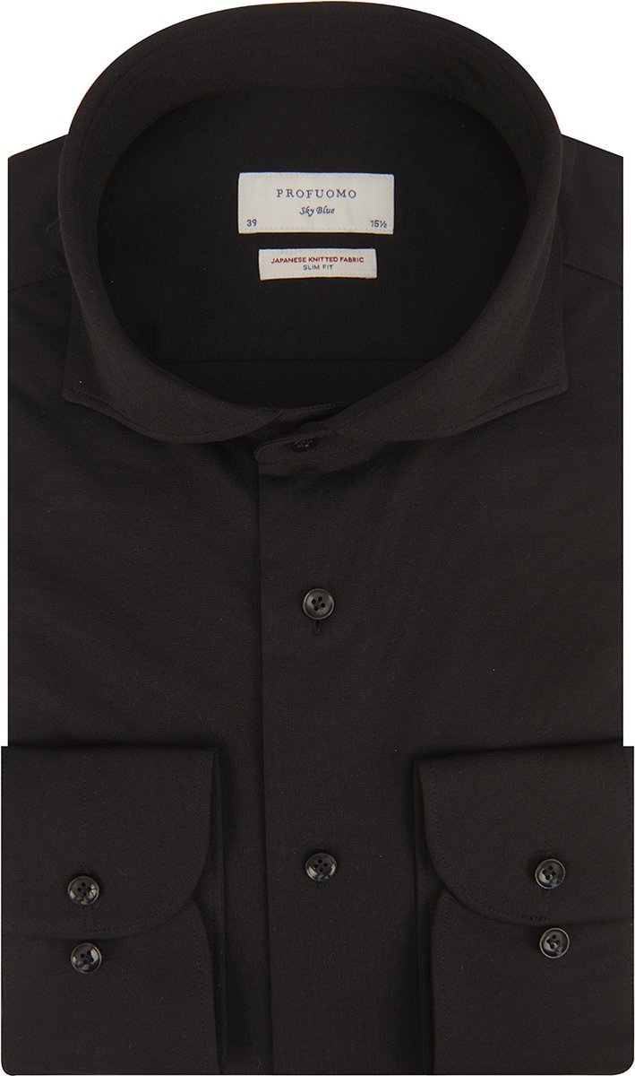 Profuomo slim fit heren overhemd – jersey – zwart – Strijkvrij – Boordmaat: 37