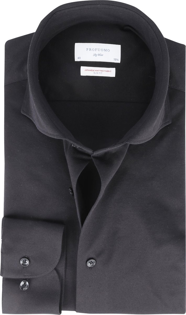 Profuomo Japanese Knitted Overhemd Zwart – Maat 41 – Heren – Overhemden Formeel